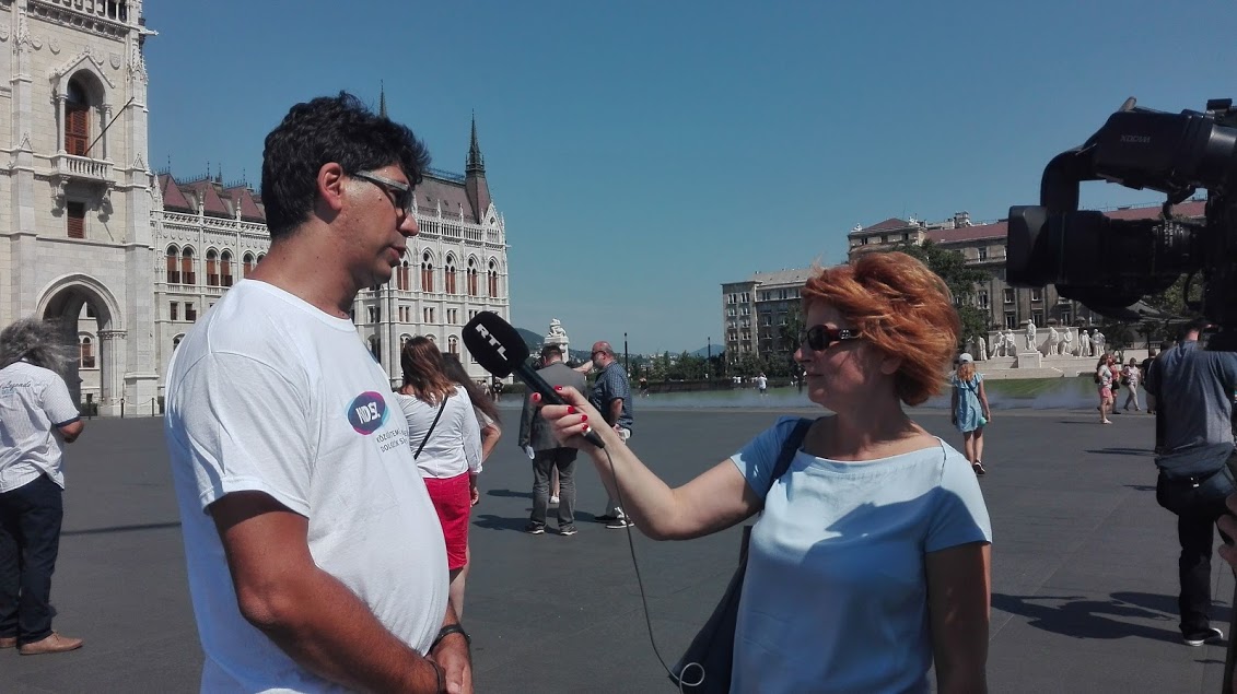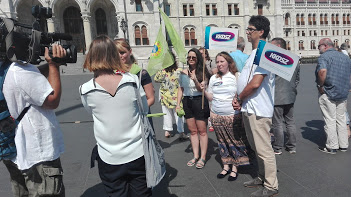 A BDDSZ és a KKDSZ csoportja a 2018. július 5-i sajtótájékoztatón, és ezt követően a két ágazati szakszervezeti elnök, Szűcs Viktória és Csóti Csaba interjút adtak.