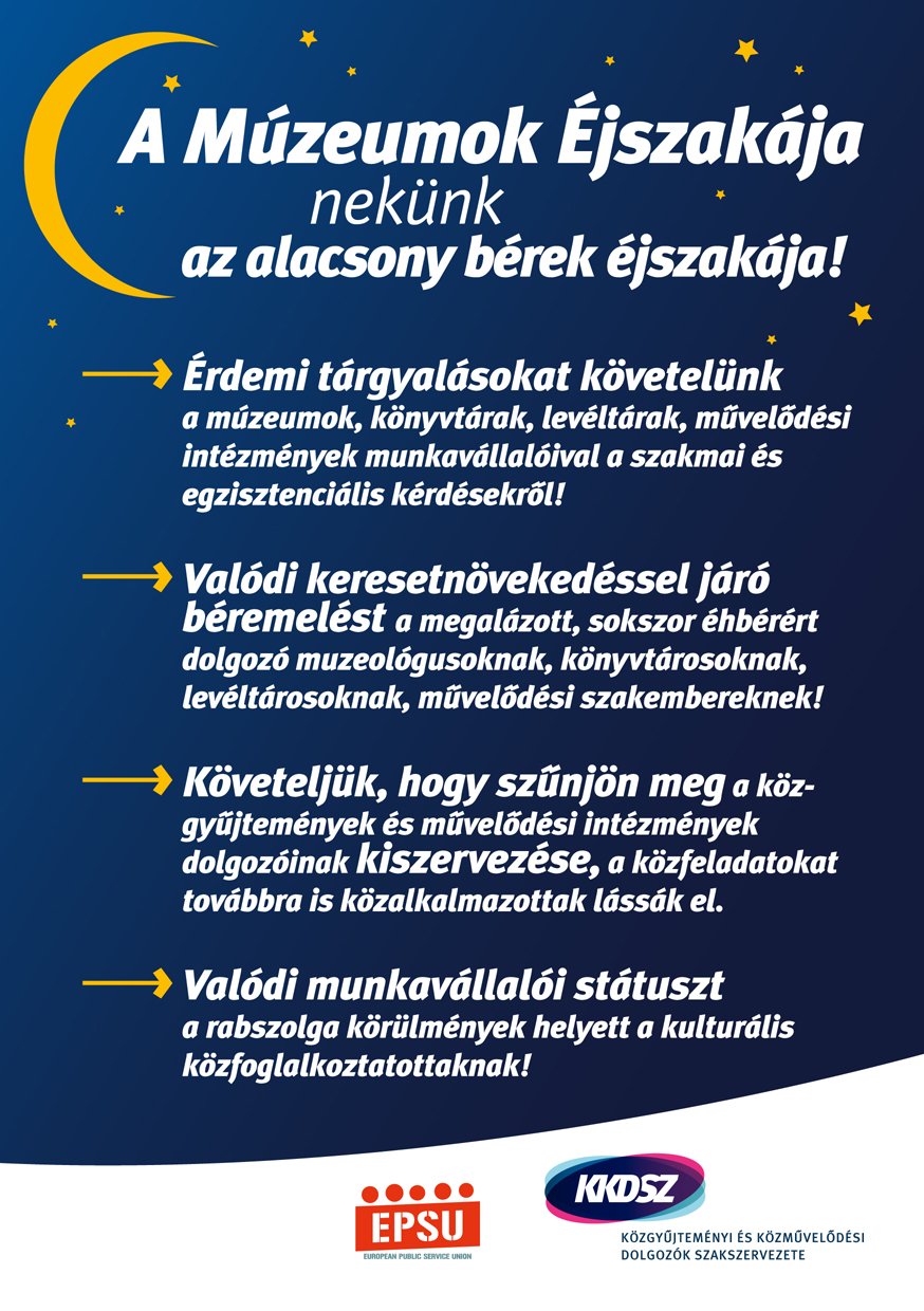 A Múzeumok Éjszakája a KKDSZ tagjainak sajnos az „Alacsony Bérek Éjszkája is egyben.