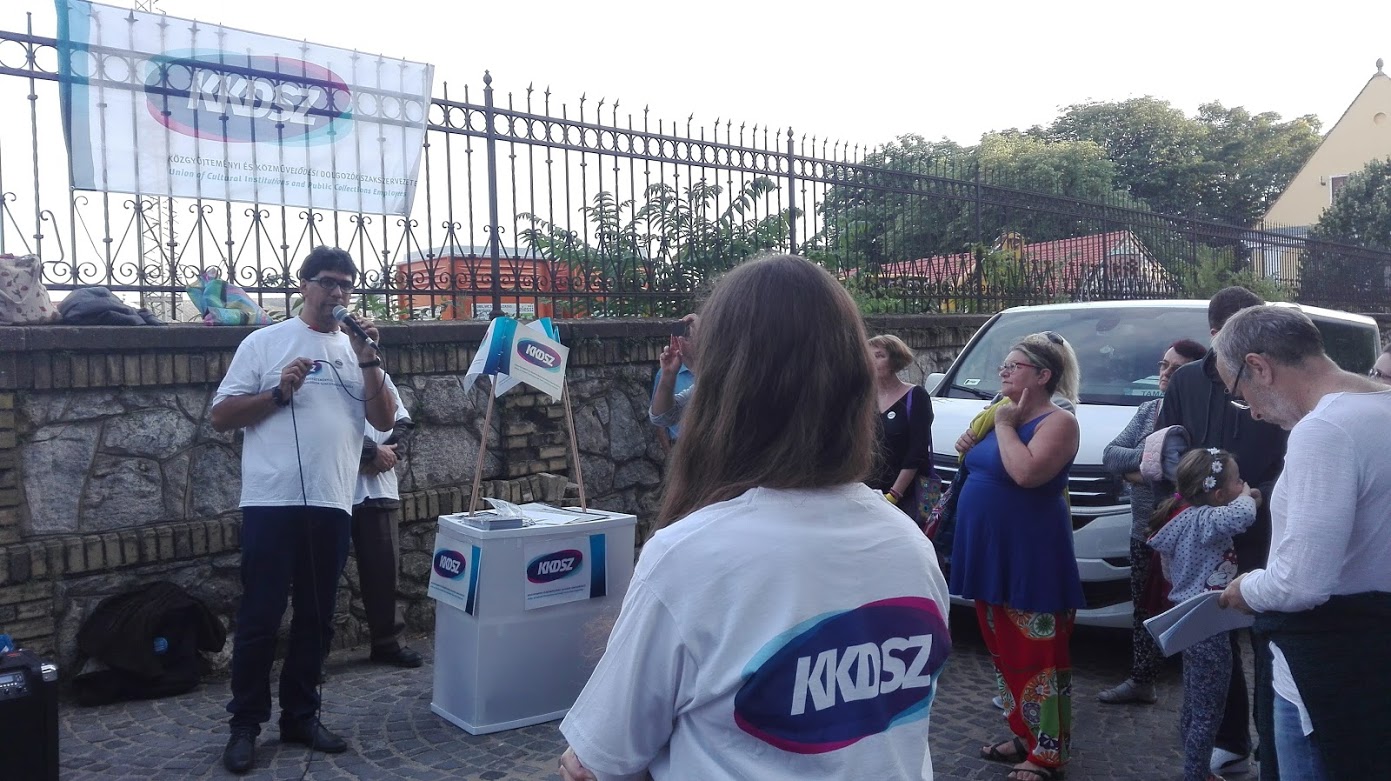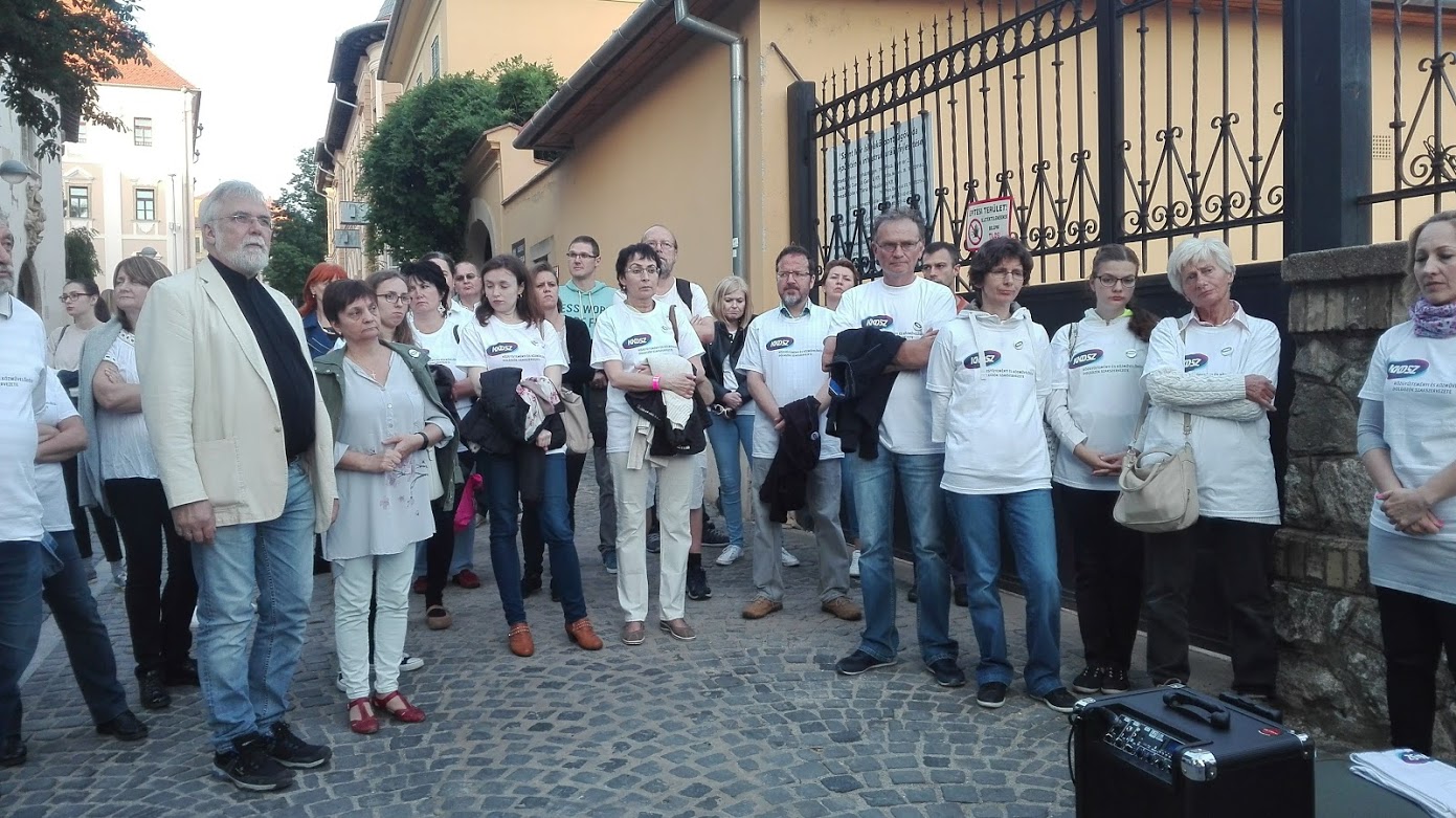 „Az éhbér ellen tüntettek a kulturális dolgozók Pécsett” címmel a: