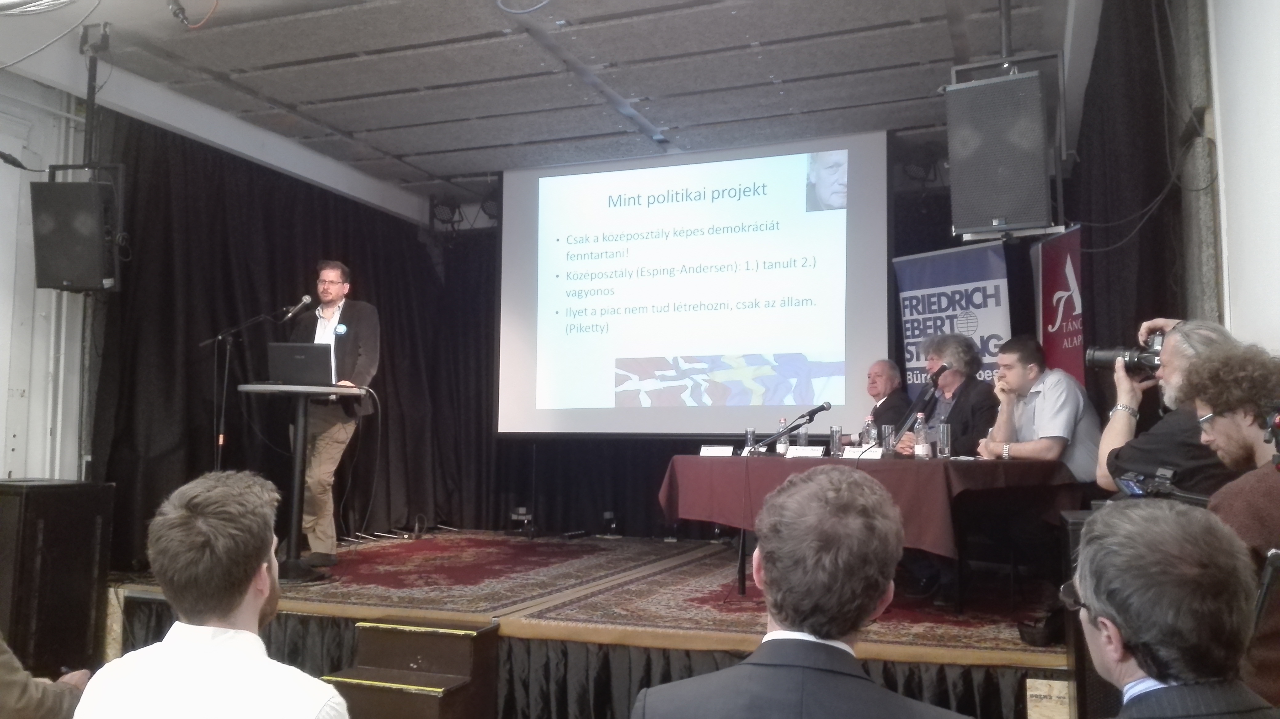 Második előadó Pogátsa Zoltán volt, aki elmondta, hogy csak a középosztály képes demokráciát működtetni, méghozzá a tanult és eléggé vagyonos középosztály.