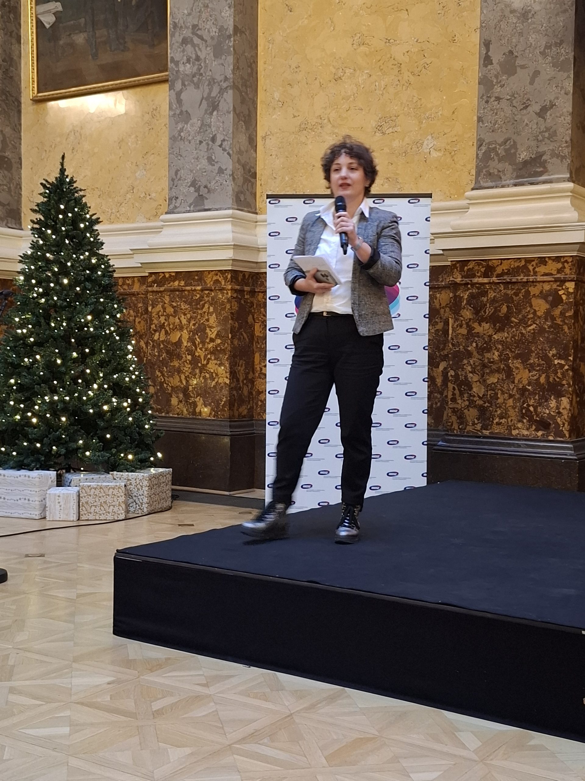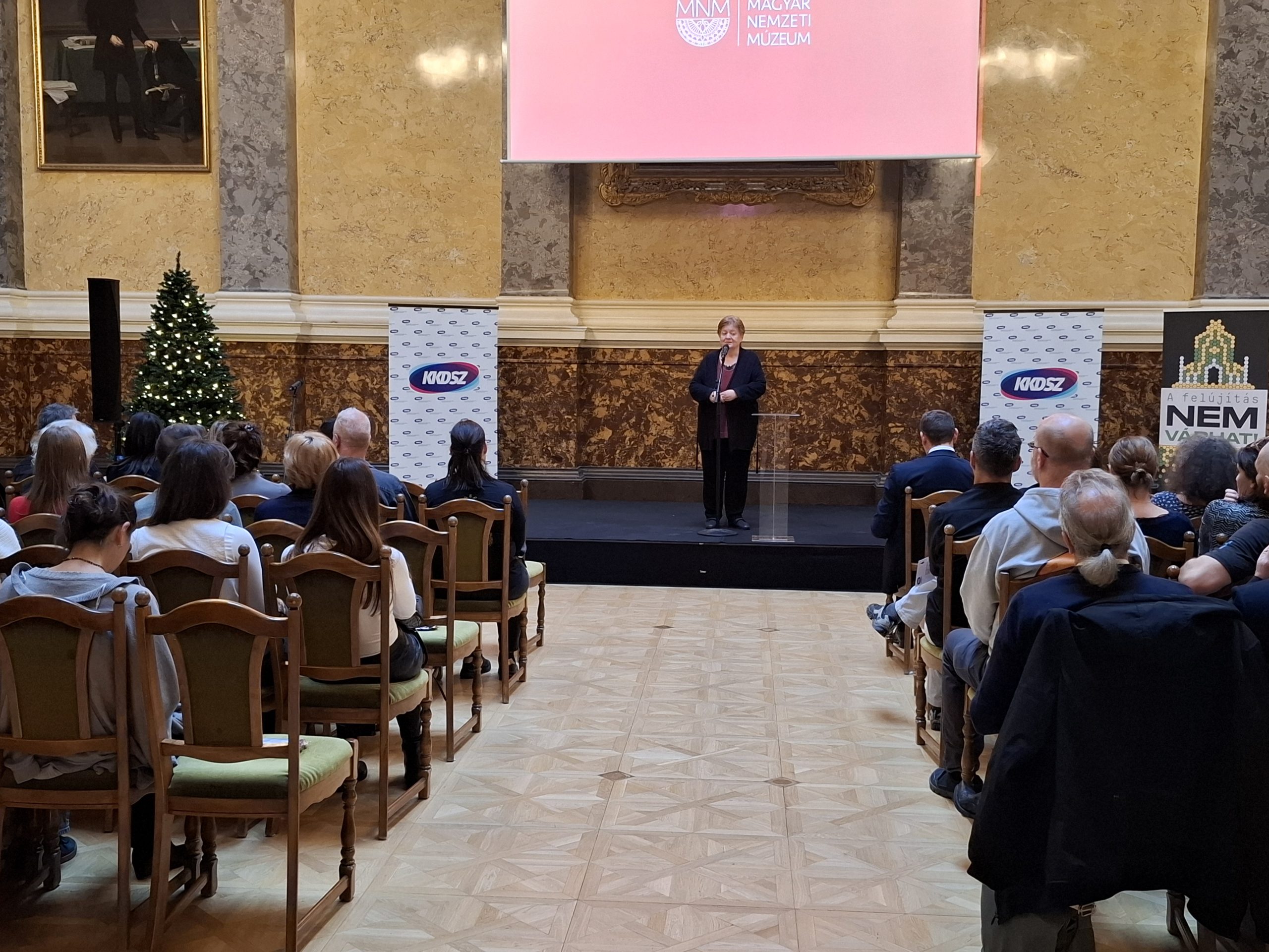 Az MNMKK munkavállalói érdekvédelmi szervezeteinek, a szakszervezetnek és az üzemi tanácsnak, a kezdeményezésére munkahelyi karácsonyra került sor a Magyar Nemzeti Múzeum dísztermében 2025. december 8-án, hétfőn.