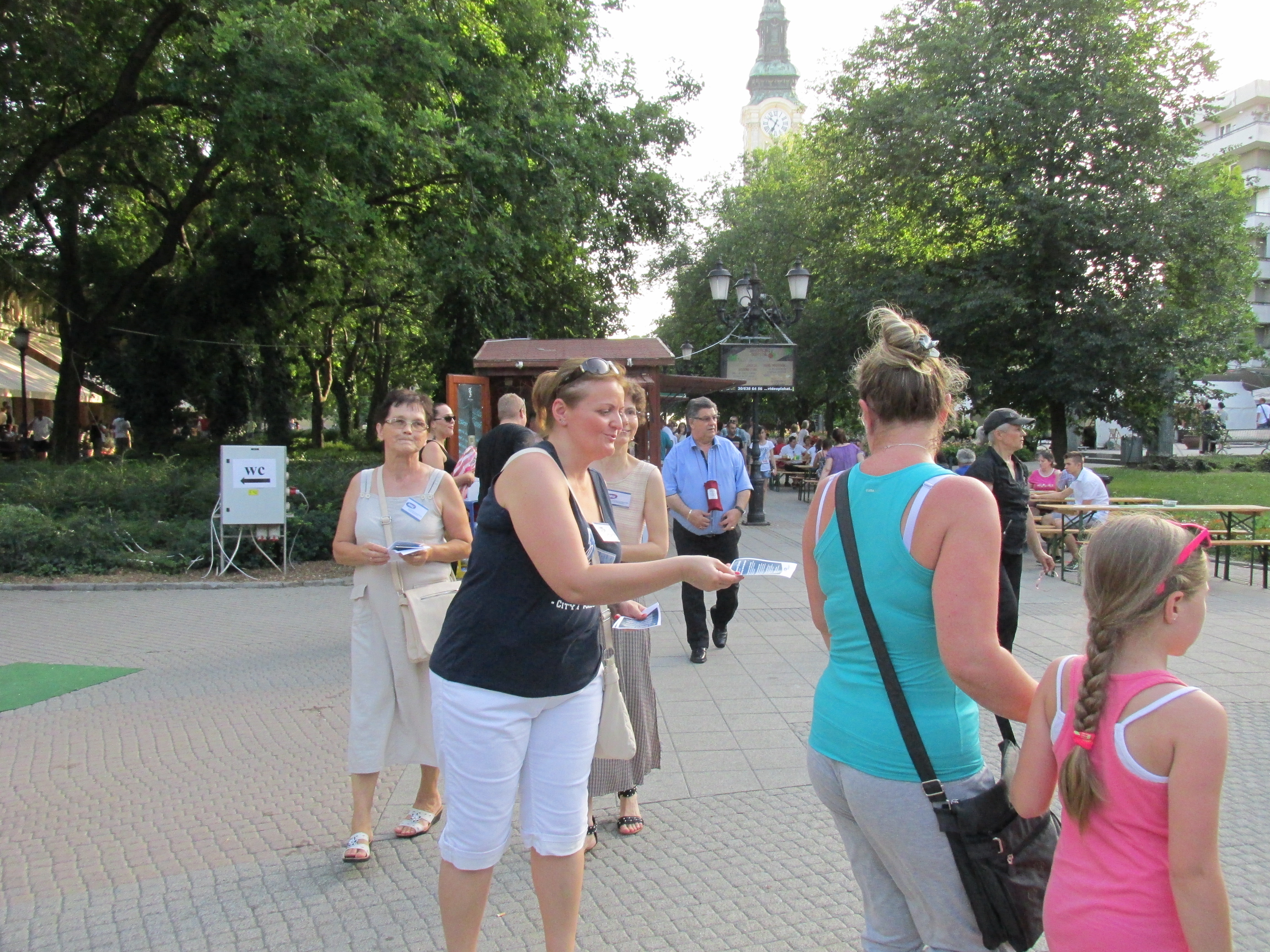 Katona József Könyvtártól (Piaristák tere 8.) indulva – Ifjúsági Otthon (Kossuth tér 4.)- Hírös Agóra (Deák tér 1.)- Bács-Kiskun Megyei Levéltár városházi részlege (Kossuth tér 1.) – Szabadság tér (Kecskeméti Barackpálinka- és Borfesztivál) –Cifrapalota (Rákóczi u. 1.) – Katona József Könyvtárig (Piaristák tere 8.).