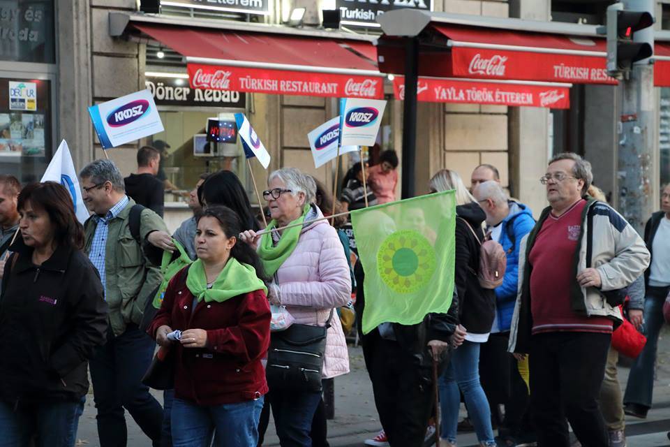 A cafeteria-rendszer visszaállításért tüntettek szakszervezetek az MNB és a parlament előtt: