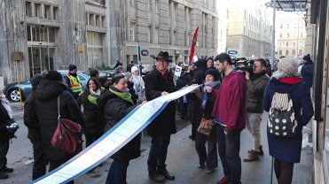 –          11 óra 10 perc: a petíció felolvasása, a több mint 20 méter hosszú petíció bemutatása a sajtó képviselőinek