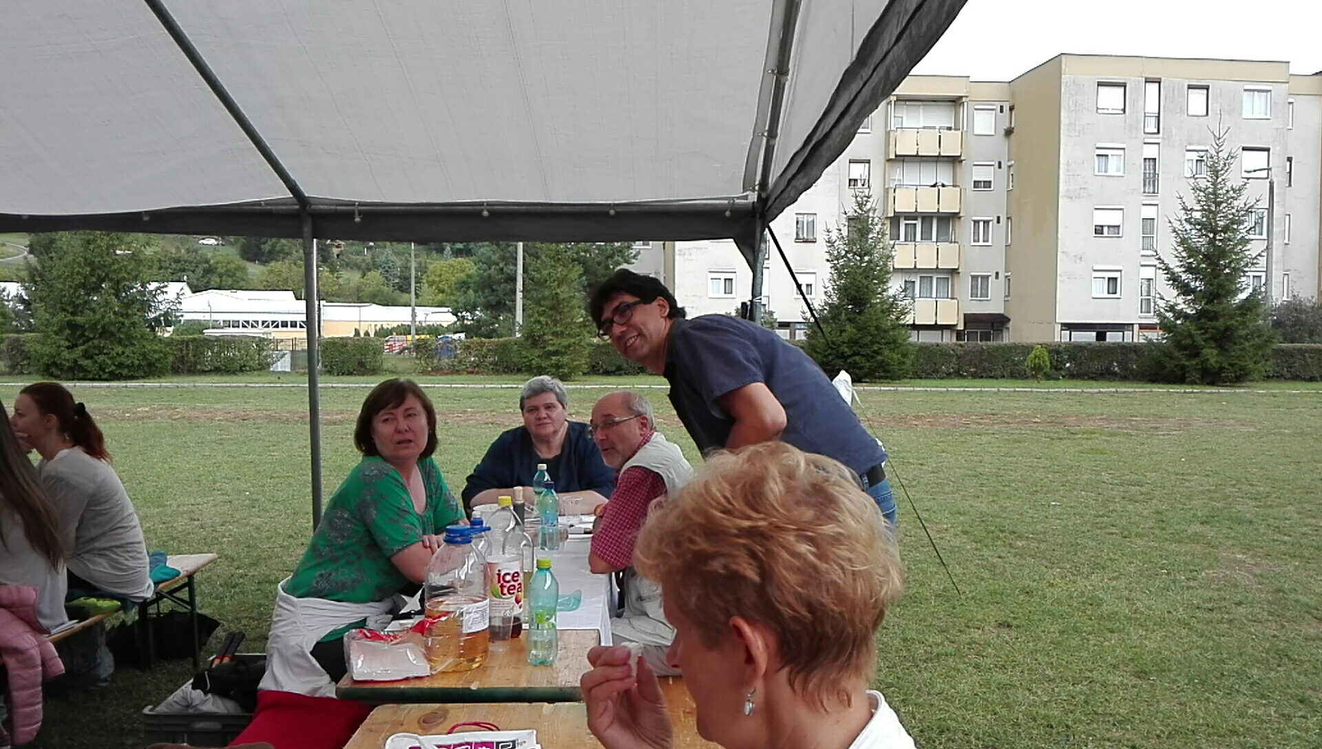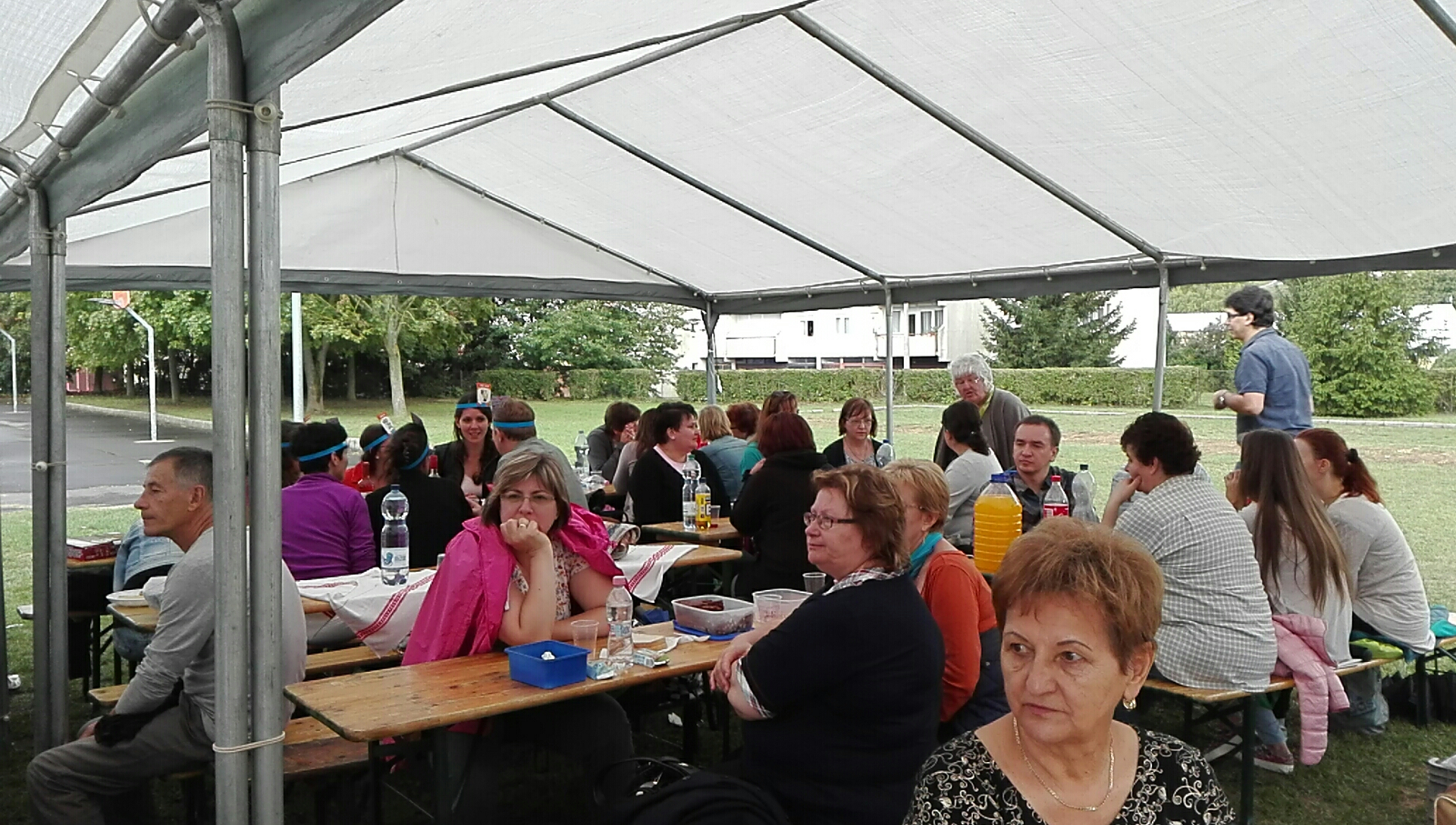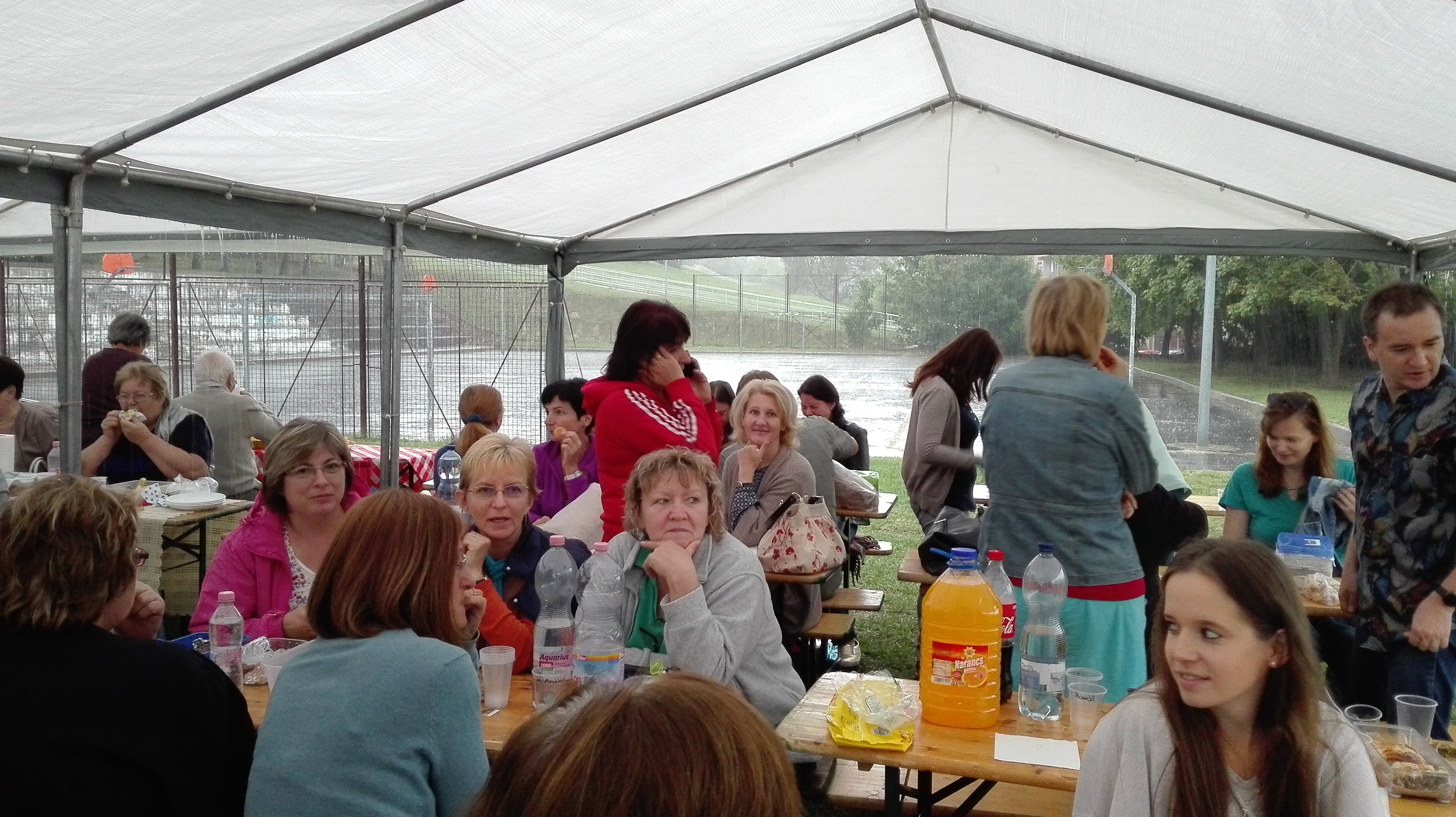 A helyszín az Apáczai Művelődési Ház udvara volt, ahol a felállított sátrak eredetileg az aznapra prognosztizált erős napsütés ellen adtak volna védelmet, de később megfelelő óvó helyül szolgált a lezúduló hirtelen zápor ellen is. A meghívottak a SZEF tagszervezetek dolgozói voltak.